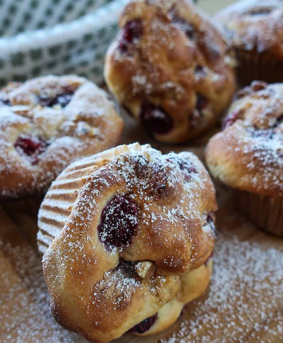 Pro tip: If using juicy fruit like berries, keep them mostly on top so the muffins stay light and fluffy.