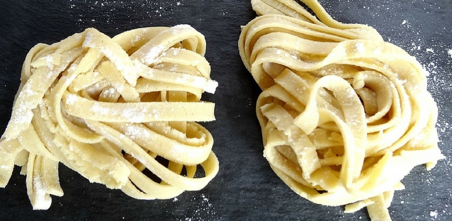 • Fettuccine or tagliatelle – Slice rolled sheets into strips
