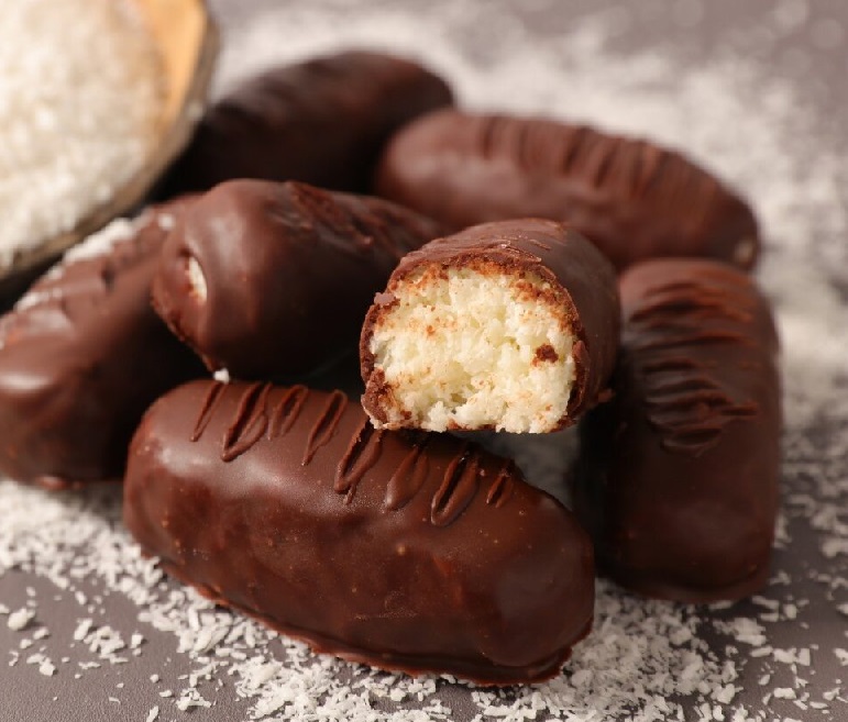 Scoop portions of the coconut mixture and shape into small bars (similar to classic Bounty bars).