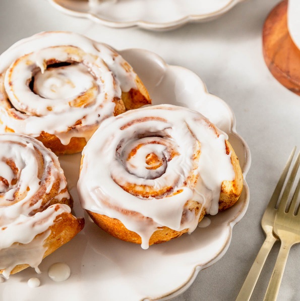 Cinnamon rolls are a sweet yeast-leavened pastry made by rolling soft dough with butter, cinnamon, and sugar, then baking until golden and topping with icing or cream cheese glaze. Originating in Europe and popular worldwide, cinnamon rolls are loved for their tender crumb and warm spice flavor.